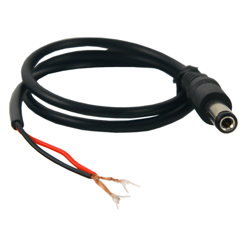 40-centymetrowy czerwono-czarny kabel równoległy SAFIRE z zaciskami śrubowymi i standardowym okrągłym złączem zasilania do kamer.