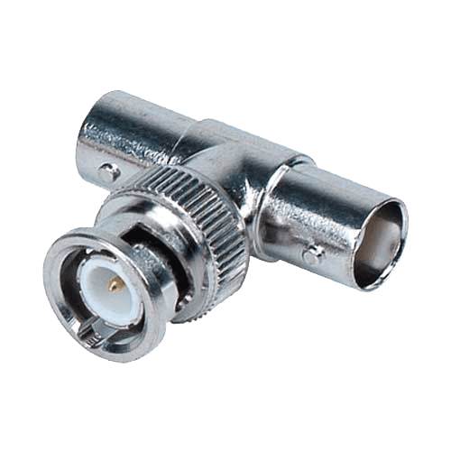 Safire BNC „T” złącze męskie na 2 żeńskie. Pozwala na wyodrębnienie sygnału ze złącza BNC do dwóch złączy w celu współdzielenia sygnału.