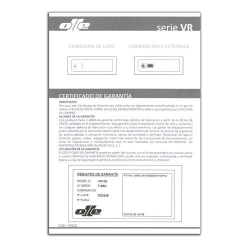 Sejf VR-100E został specjalnie zaprojektowany do ochrony magnetowidów, których rozmiar nie przekracza 1U rack. Składa się ze stalowej skrzynki z drzwiami o grubości 2 mm i stalowej ramy 4 mm, wyposażonej w otwory wentylacyjne rozmieszczone w całej skrzynce, tylne okna do okablowania oraz różne wiertła do mocowania sejfu. Jest wykończony farbą epoksydowo-poliestrową polimeryzowaną w temperaturze 180 ºC, bardzo odporna.