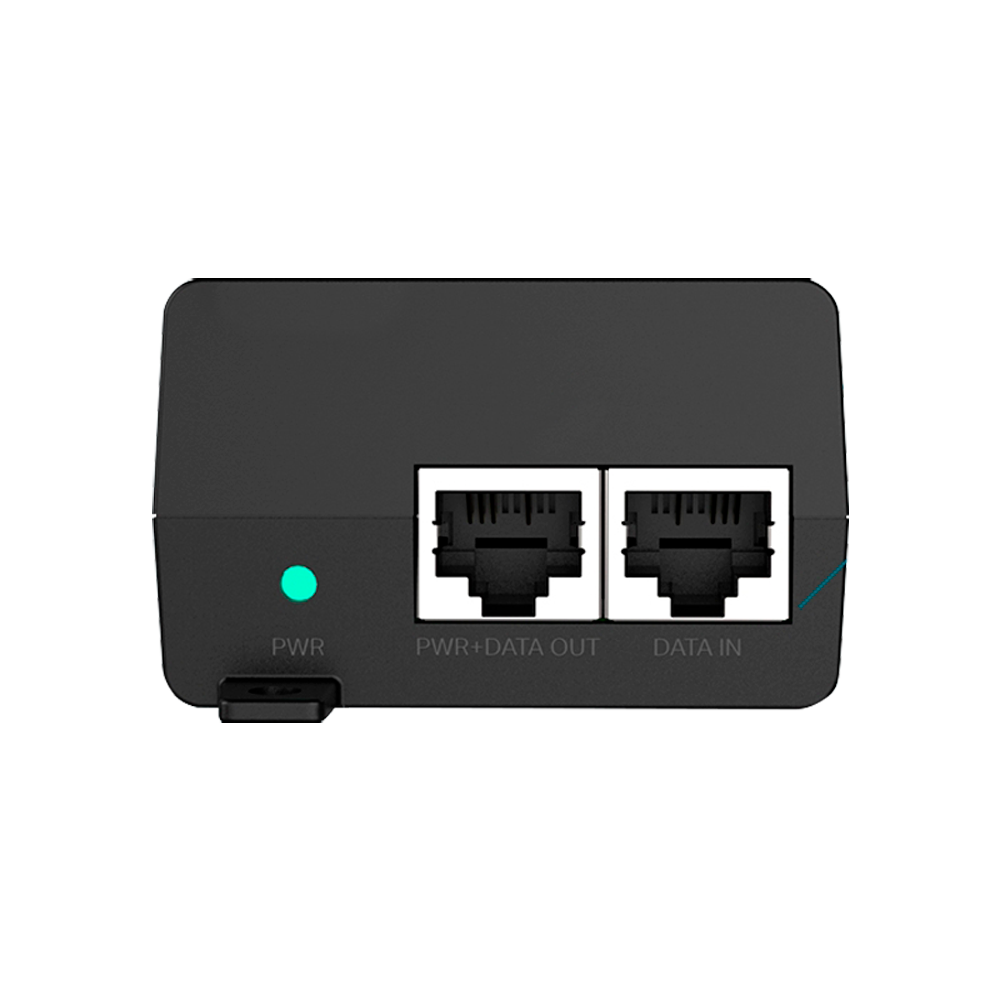 Quick and easy solution that allows remote power supply to a network device, such as an IP camera, using the same cable used for the network connection. Simply connect the network cable to the input RJ45 of the injector along with the power source of this, hereby obtaining the data flow and the power supply through a single Ethernet cable to be connected to the output RJ45 of the injector.