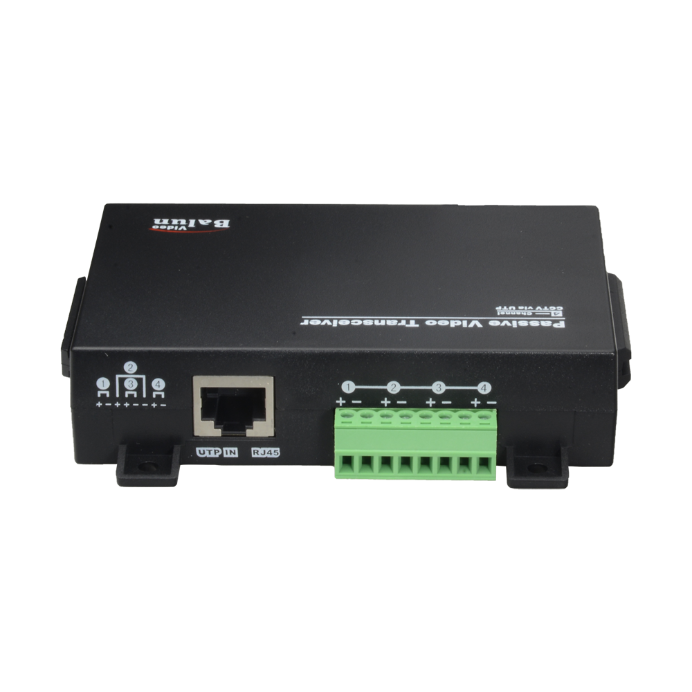Pasywny transceiver wideo za pomocą skrętki 4 kanałów, zoptymalizowany pod kątem wideo wysokiej rozdzielczości HDTVI / HDCVI / AHD / CVBS. Może działać jako nadajnik lub odbiornik i umożliwia przesyłanie sygnału do czterech kamer wideo za pomocą jednego kabla UTP.