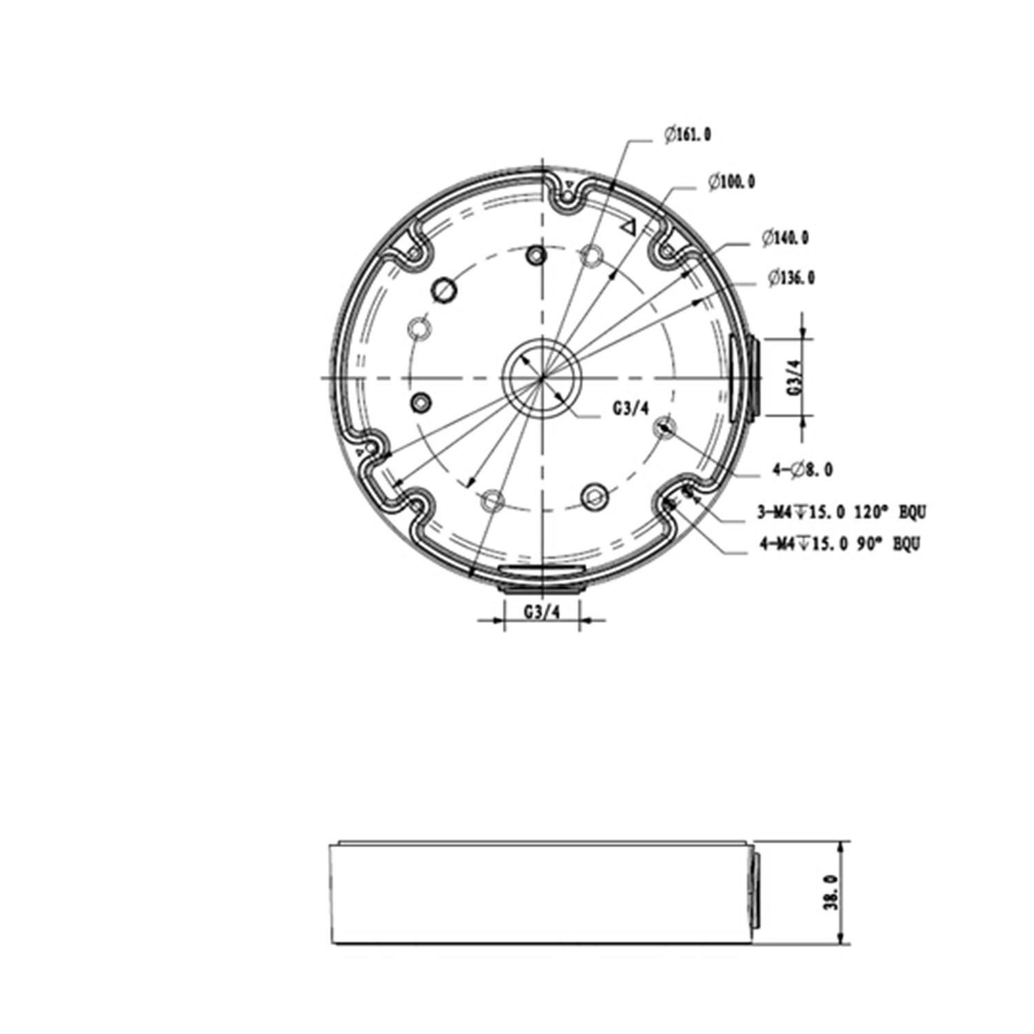 Pozwala na umieszczenie w nim zasilacza, kabli i akcesoriów instalacyjnych. Posiada wiele otworów do montażu różnych typów kamer kopułkowych. Mocowanie do ściany lub sufitu za pomocą 4 śrub w zestawie. Kamera montowana jest w zdejmowanej pokrywie podpory. Umożliwia przejście okablowania wewnętrznego.