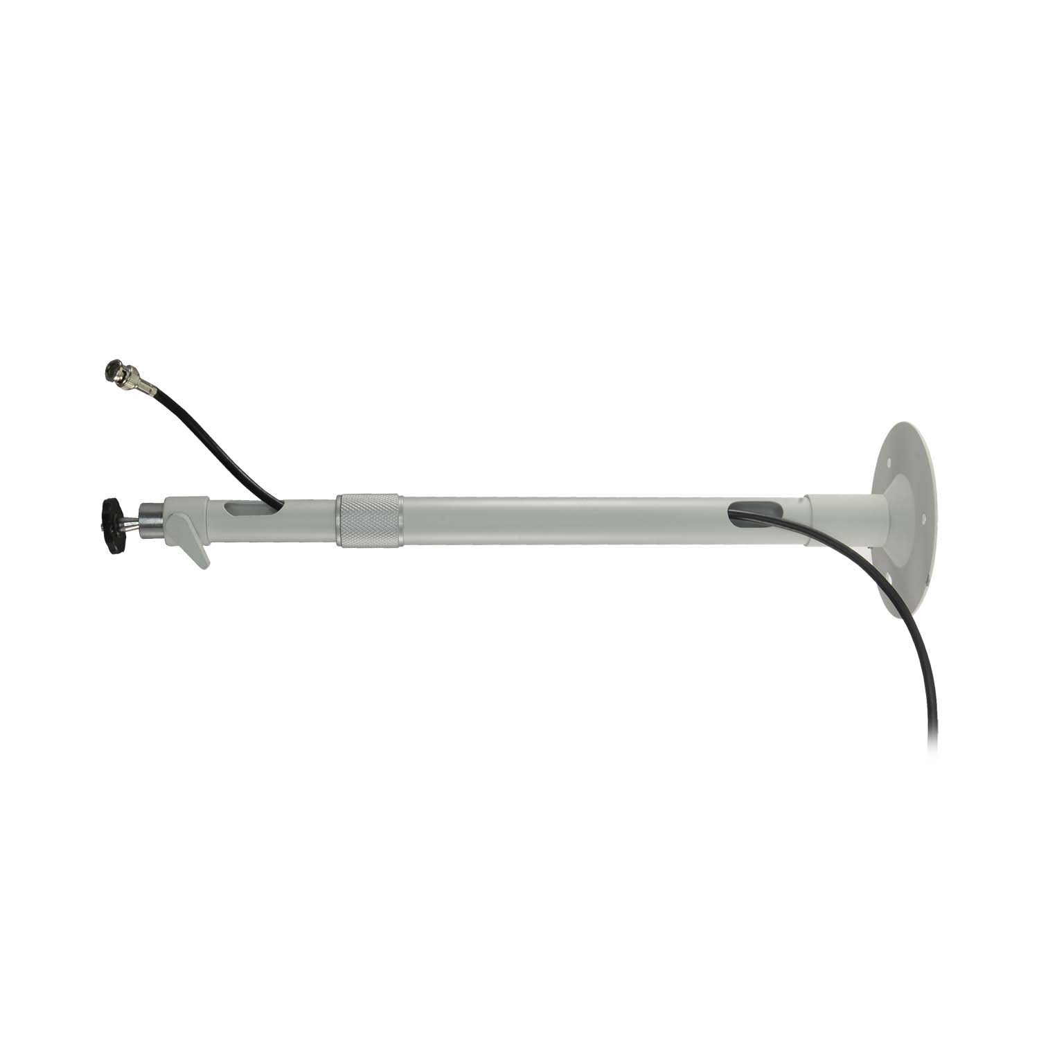 Rozsuwany metalowy wspornik kamery z wewnętrznym przepustem kablowym.