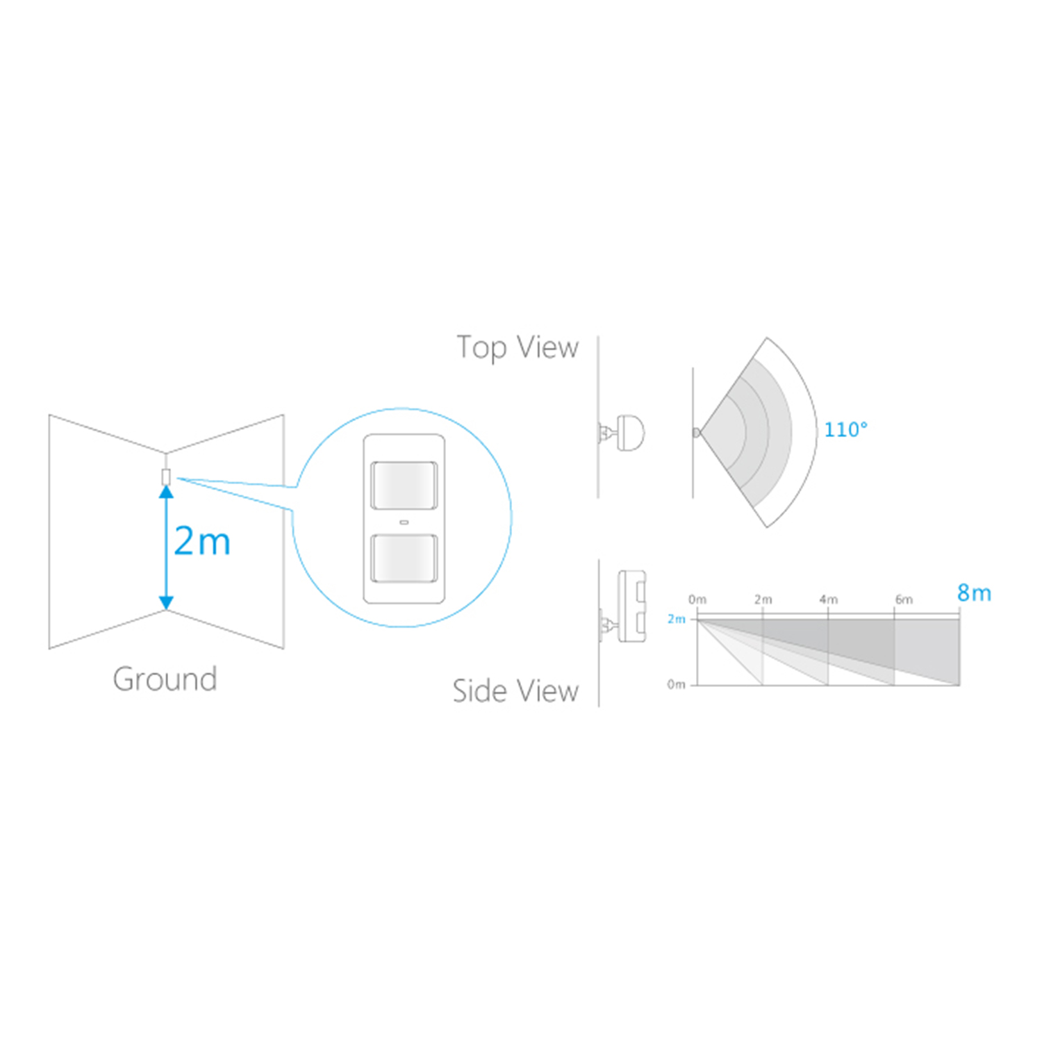 - Zasięg wykrywania 8 m / 110º