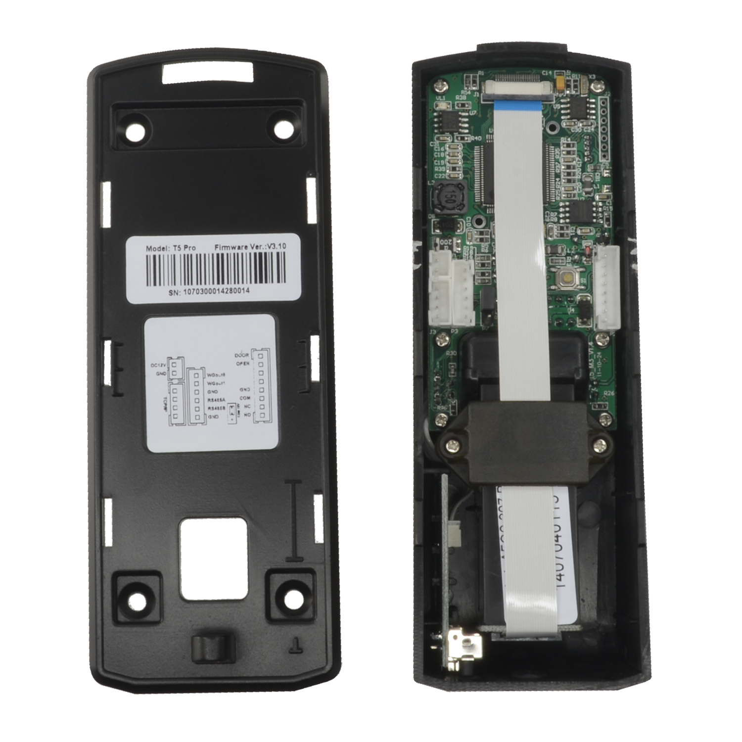 Komunikacja z komputerem przez TCP/IP, RS485 i miniUSB Plug & Zagraj w port. Zakodowane wyjście Wiegand 26. W przeciwieństwie do T5, T5PRO zawiera własny kontroler dostępu i ma czujnik drzwi, złącze do przełącznika drzwiowego i przekaźnik do bezpośredniego sterowania elektronicznymi mechanizmami blokującymi. Wyjście przekaźnikowe może zapewnić wyjście z napięciem 12 V DC lub wyjście ze stykiem NO / NC bez napięcia, wybierając żądaną opcję za pomocą wewnętrznej zworki.