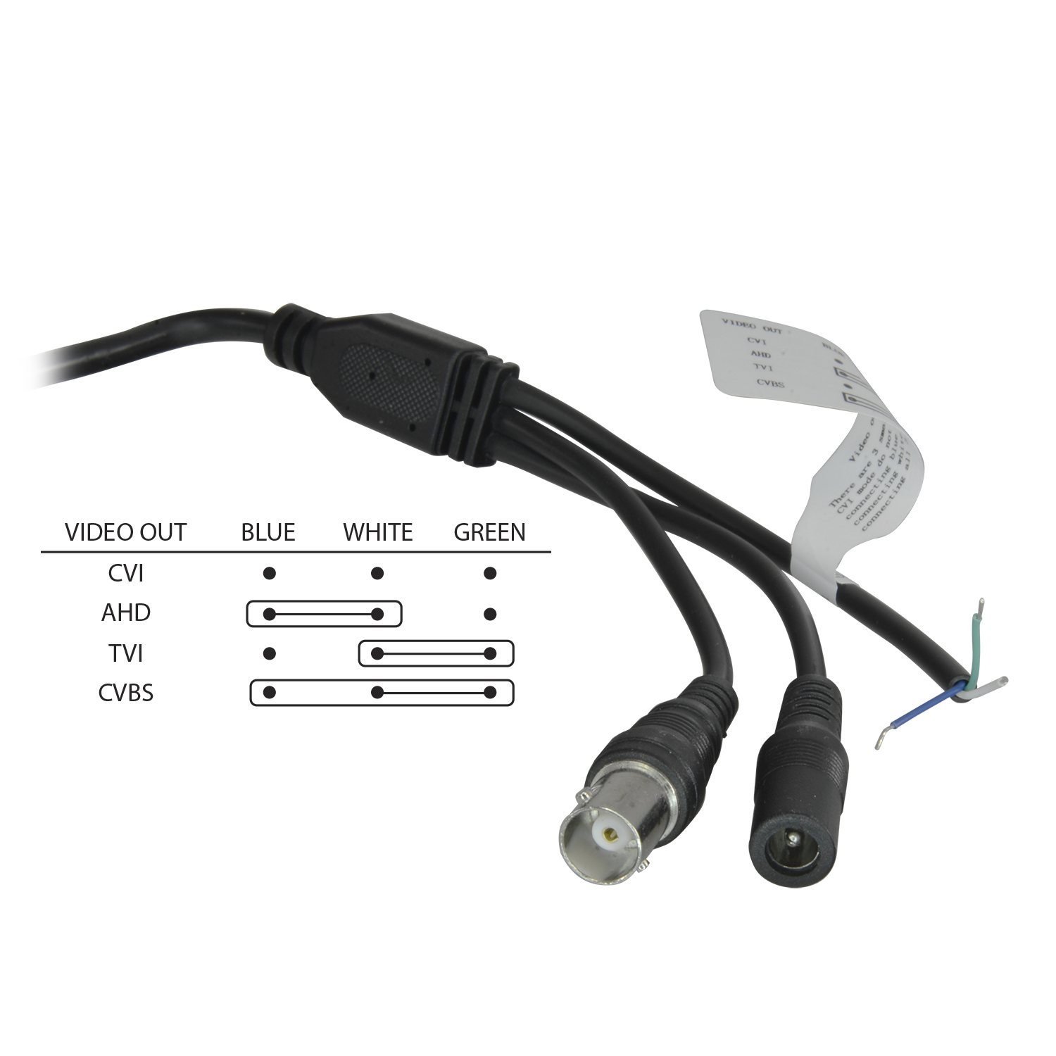 Połączenie wideo BNC w formatach HD HDTVI / HDCVI / AHD oraz w standardowym formacie analogowym CVBS do testu wideo, przełączane przełącznikiem przez połączenie 3 wątków.