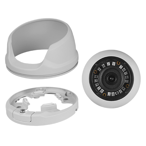 Obudowa wykonana jest z aluminium i jest odporna na warunki atmosferyczne zgodnie z protokołem IP66, dzięki czemu nadaje się zarówno do użytku wewnątrz, jak i na zewnątrz. Posiada trzy osie (3 AXIS), które umożliwiają łatwą i dokładną regulację kąta patrzenia, przy montażu sufitowym lub ściennym. Zawiera śrubę łączącą podstawę z konstrukcją kamery, co ułatwia instalację.
